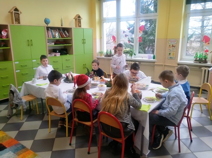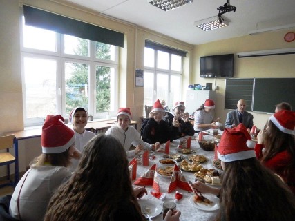 Po przedstawieniu i złożeniu życzeń uczniowie ze swoimi wychowawcami udali się na klasową wigilię.