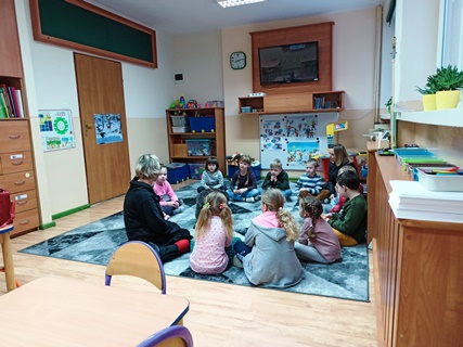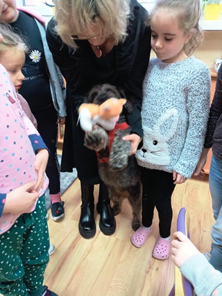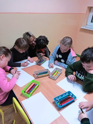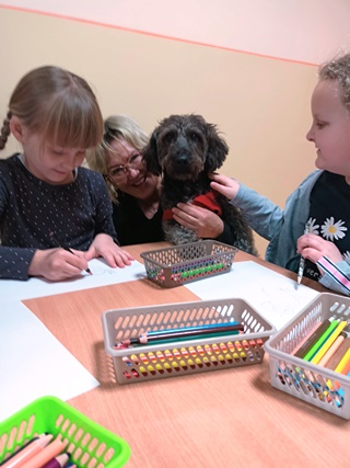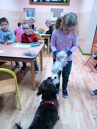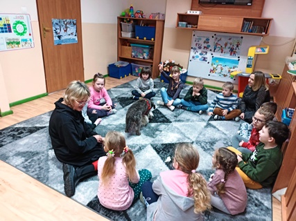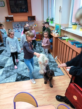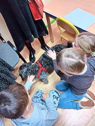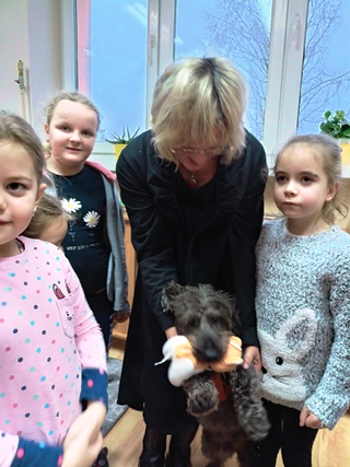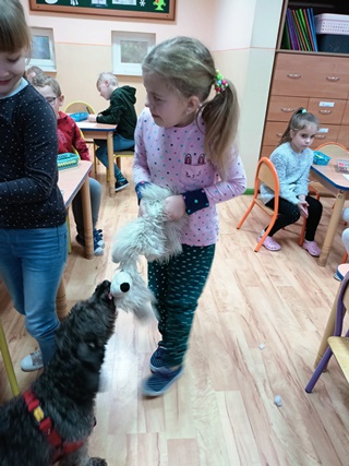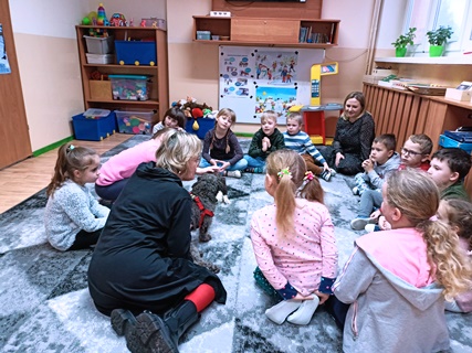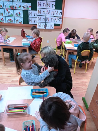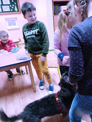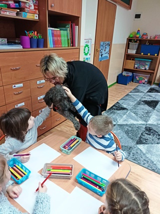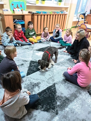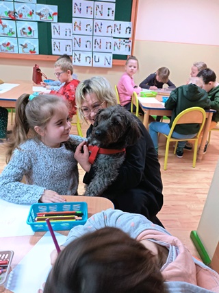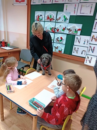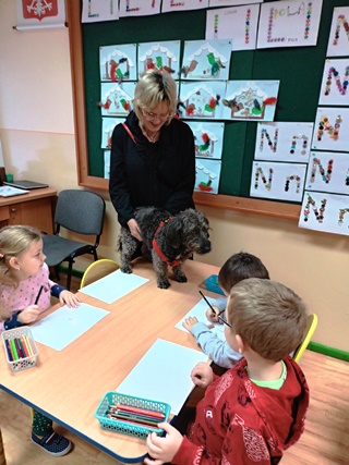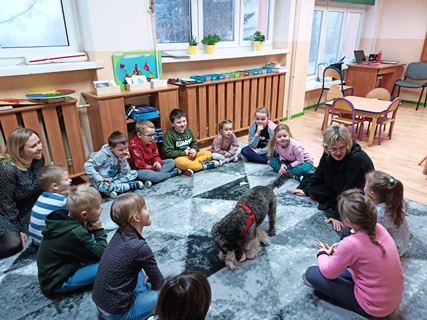 W ramach realizacji innowacyjnego programu "Pies moim przyjacielem" 17.01.2022 r. na pierwszej godzinie lekcyjnej w oddziale zerowym odbyły się zajęcia z udziałem psa Franka.