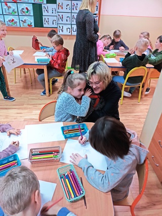 Franek chętnie bawił się z dziećmi, odszedł z klasy przeszczęśliwy, otrzymał od maluchów w prezencie maskotkę