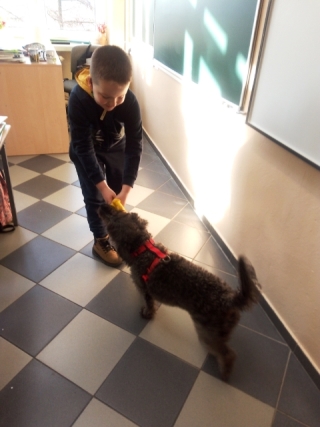 Maluchy bardzo ciepło przyjęły psa, wiedziały jak z nim postępować, bawić się, aktywnie wszyscy pracowali.