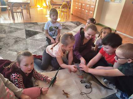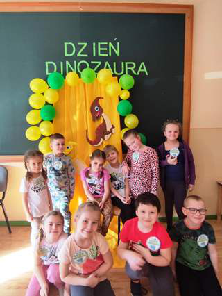 25 lutego obchodziliśmy w szkole Dzień Dinozaura. Z tej okazji w piątek w oddziale przedszkolnym zorganizowane zostały zajęcia, dzięki którym najmłodsi zapoznali się z wyglądem i zwyczajami tych olbrzymich zwierząt. Podczas zajęć dzieci układały puzzle, wykonywały dinozaury i brały udział w wielu innych ciekawych zadaniach przygotowanych przez Panią Magdę.