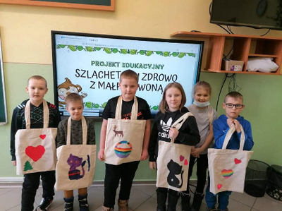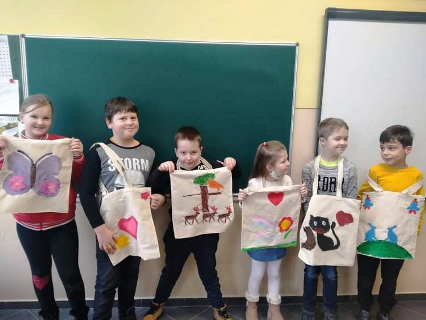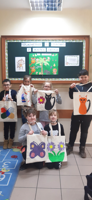 Klasy I-III w ramach projektu „Szlachetnie i zdrowo z Małpką Iwoną” brały udział w Dniu Bez Opakowań Foliowych. Celem zajęć było pokazanie dzieciom, że w prosty sposób możemy przyłączyć się do ochrony naszej planety. Najmłodsi dowiedzieli się czym możemy zastąpić foliówki. Główną atrakcją zajęć było samodzielne ozdobienie bawełnianej torby. Dzieci mają świadomość, że każdego dnia podejmujemy decyzje, które mają wpływ na otaczający nas świat. Wiedzą, że razem możemy o niego zadbać. Zajęcia sprawiły dzieciom wiele radości, a wykonane torby były przepiękne.
