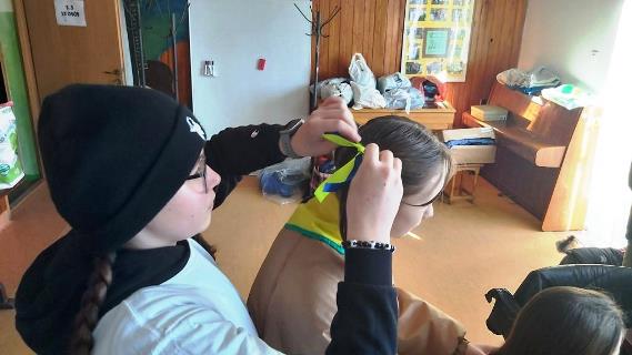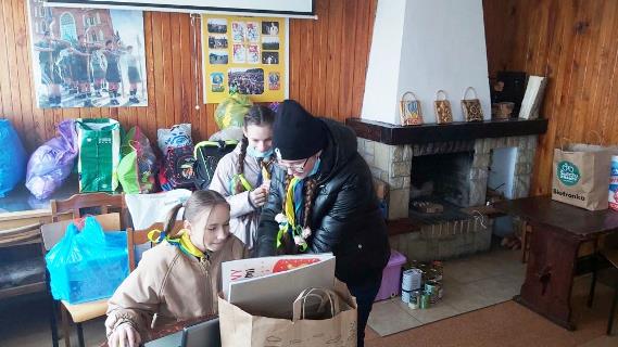 04 marca społeczność szkoły - tzn. przedstawiciele koła PCK i 3 GDH „Ogniki” im. K. Wojtyły w Szczepankowie posegregowali dary dla uchodźców z Ukrainy. Pierwsza tura darów dotarła 4 marca do Hufca ZHP Ostróda, czyli Domu Harcerza. Następnego dnia przedstawiciele 3 GDH: dh Danuta z Frankiem, dh Kaja, dh Ania, dh Hania, dh Julia, dh Oliwia i drużynowy przyjechali do Domu Harcerza na dyżur podczas przyjmowania darów dla uchodźców z Ukrainy. Następnie, 8 marca po lekcjach, przedstawicielki koła PCK działającego przy naszej szkole tzn. Ania z kl. 8 oraz Amelia, Hania i Julia z kl. 7 wraz z nauczycielem Dariuszem Wolskim udali się z darami dla uchodźców z Ukrainy do siedziby PCK w Ostródzie. Ponownie zrobiliśmy coś dla innych…