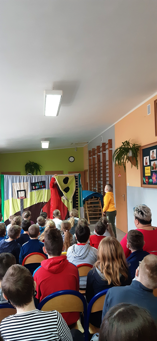 03 marca uczniowie naszej szkoły obejrzeli teatrzyk pt. „Trudna droga do zwycięstwa, czyli kilogramy szczęścia” w wykonaniu aktorów ze studia artystycznego ARKADA. Była to opowieść o chłopcu, który prowadził niezbyt zdrowy tryb życia. Czas spędzony przy komputerze, picie słodkich napojów oraz zajadanie niezdrowych przekąsek doprowadziły chłopca do otyłości. Zmiana nastąpiła, gdy chłopiec trafił na szczęśliwy kupon w paczce chipsów. Wzięcie udziału w obozie sportowym okazało się wyzwaniem oraz zmianą jego stylu życia. Grupa teatralna pokazała nam, jak ważne jest prawidłowe odżywianie oraz aktywność fizyczna. Musimy o tym pamiętać i dbać o swoje zdrowie każdego dnia.