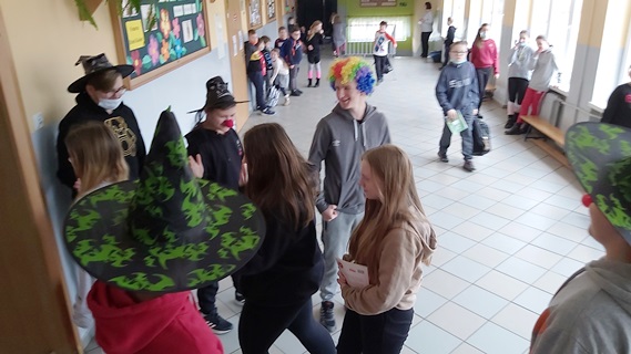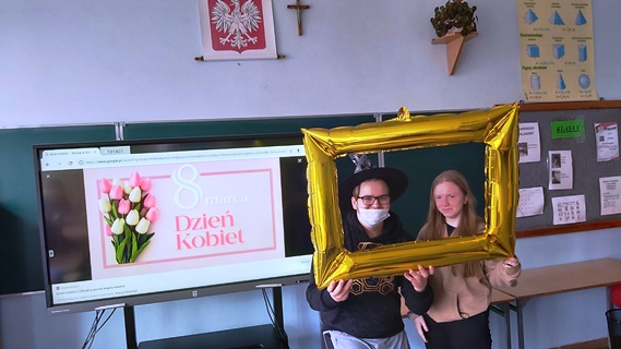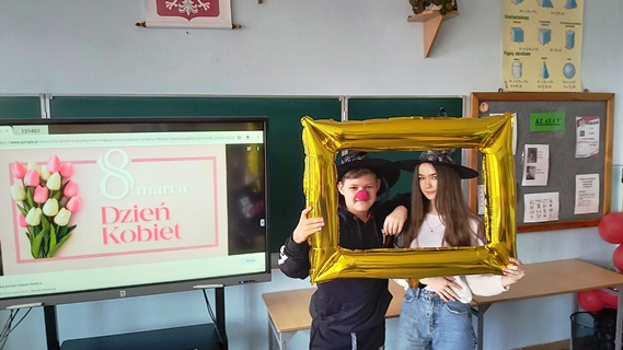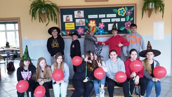 We wtorek - 08 marca - od rana trwały przygotowania do Dnia Kobiet w naszej szkole. Także wychowawca i chłopcy z klasy ósmej po raz ostatni przygotowywali niespodzianki dla swoich dziewczyn z klasy. Chłopcy w czapkach czarodziejów przywitali kobiety z tortem w tym uroczystym dniu. Były też życzenia, dla każdej kobietki prezent, czyli kubeczek ze zdjęciem całej klasy ósmej, ogromna czekolada, balonik oraz możliwość zrobienia fotki w ramce z klasowymi przystojniakami. W tle było słychać muzykę. Ach to ostatni Dzień Kobiet w klasie ósmej…