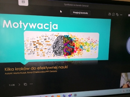 W ramach Programu Wychowawczo-Profilaktycznego i Programu Poprawy Efektywności Kształcenia klasa VII i VIII 16-tego marca na drugiej godzinie lekcyjnej wzięła udział w zajęciach online przygotowanych przez pracowników Poradni Psychologiczno-Pedagogicznej w Ostródzie "Motywacja - kilka kroków do efektywnej nauki".