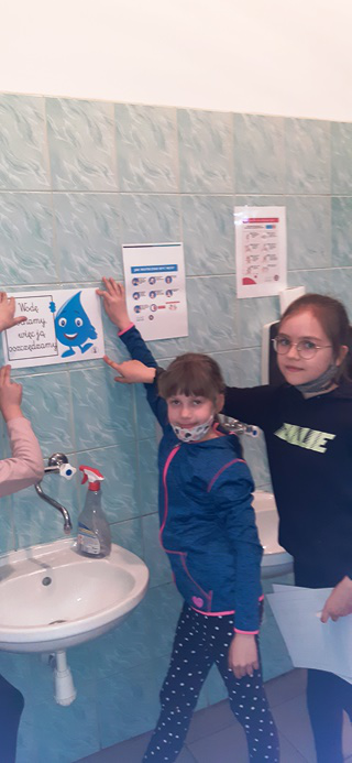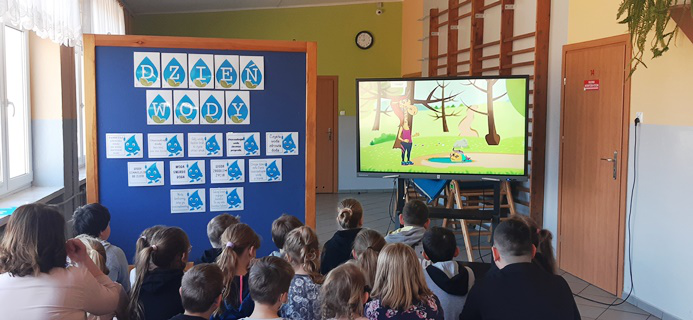 Klasy I-III zrealizowały kolejne zadanie z projektu „Szlachetnie i zdrowo z małpką Iwoną”. Zajęcia, w których brali udział miały na celu uświadomić im, że woda jest dla nas cennym skarbem. Dzieci obejrzały bajkę edukacyjną "Oszczędzanie wody", która pokazała wszystkim, że bez wody nie można żyć. Uczniowie zauważyli, że problem dotyka nie tylko ludzi, ale również zwierząt. Przedstawiona prezentacja natomiast przypomniała wszystkim jak we właściwy sposób korzystać z wody i jej nie marnować. Chętne osoby, które chciały zostać przyjacielem wody „przybiły piątkę” kropelce oraz otrzymały odznakę. Na koniec dzieci przykleiły we wszystkich toaletach w szkole „kropelki przypominajki”, by pamiętać o oszczędzaniu wody.