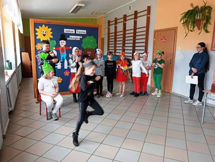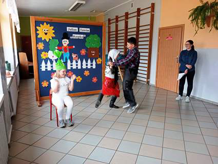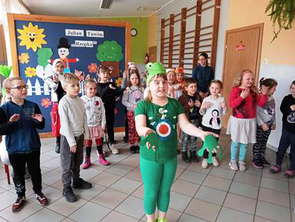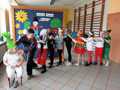 Na zakończenie tygodnia, dzieci z oddziału przedszkolnego oraz klas I-III miały możliwość obejrzeć przedstawienie J. Tuwima „Rzepka”, które przygotowały dzieci uczęszczające na zajęcia czytelnicze. Na scenę wyszły również przedszkolaki i wszyscy wspólnie zaśpiewali piosenkę „Żabka”. I tak oto została przybliżona wszystkim twórczość znanego, wybitnego poety.