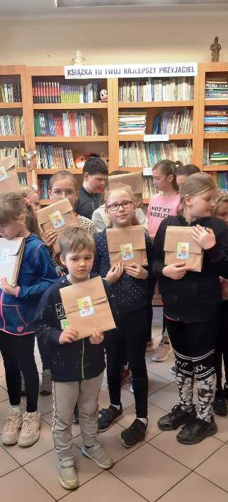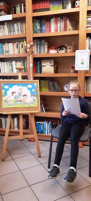 25 kwietnia obchodziliśmy w szkole Dzień Książki i Praw Autorskich. Z tej okazji w bibliotece szkolnej uczniowie wzięli udział w zabawie czytelniczej „Wypożycz książkę w ciemno”. Pomysł cieszył się dużym zainteresowaniem, ponieważ wszystkie przygotowane książki zostały wypożyczone. Młodsi czytelnicy wysłuchali wierszy oraz zagadek. Mogli samodzielnie ozdobić zakładkę i dowiedzieć się również, co czyni ich dobrymi czytelnikami. Przygotowana została także Top Lista najchętniej czytanych książek przez młodszych i starszych uczniów naszej szkoły. Wśród osób, które wypożyczyły tego dnia książki rozlosowane zostały nagrody.