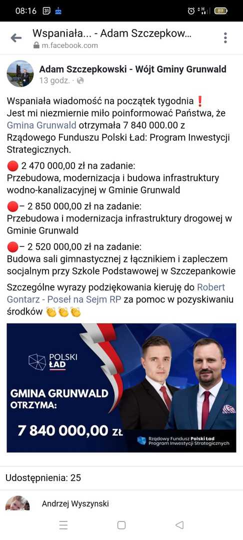 Informacja za https://pl-pl.facebook.com/GrunwaldGmina/