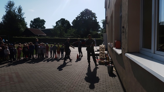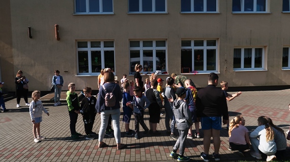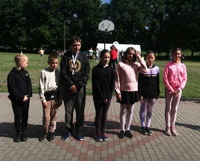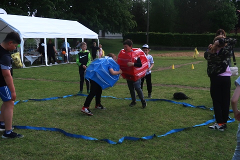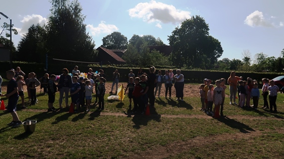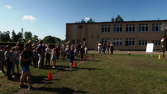 03 czerwca 2022 roku od godzin porannych rozpoczął się Dzień Dziecka i Dzień Patrona naszej szkoły Zawiszy Czarnego. Tuż po godzinie ósmej rozpoczął się apel, podczas którego Pani dyrektor Jolanta Pastor uroczyście otworzyła nasze szkolne obchody, a następnie uczniowie klas IV-VIII wraz z wychowawcami udali się na konkurs historyczny zaś młodsi tzn. uczniowie klas I-III oraz dzieci z oddziału przedszkolnego wraz z wychowawcami udali się na RAMBIT. W każdej konkurencji rekreacyjno-sportowej startowało po sześcioro przedstawicieli, były biegi w workach, biegi przez skakanki, przechodzenie przez hula hop, przenoszenie piłeczki na łyżeczce, rzuty kulek papierowych do wiaderka, kręgle…. Współzawodnictwo było niesamowite. Tak uczestnicy, jak i nauczycielki były zaangażowanie w dopingowanie zawodników. Każdy uczestnik otrzymał nagrodę za udział w konkurencjach. Po zmaganiach nastąpił czas na upragniony poczęstunek, a było czym zapełnić brzuszki… Przepyszne jedzonko przygotowały mamusie naszych uczniów.