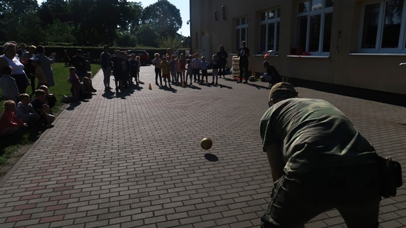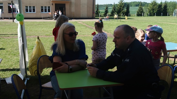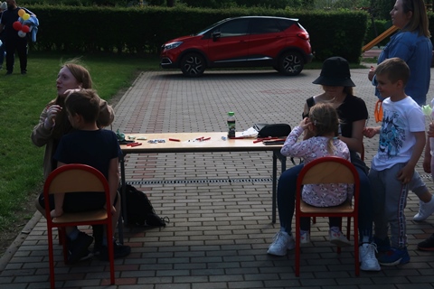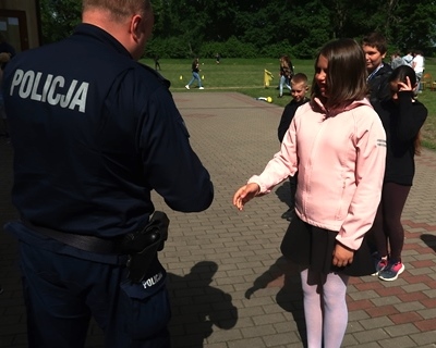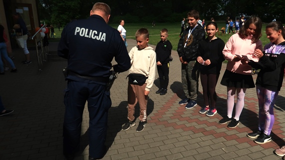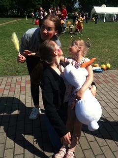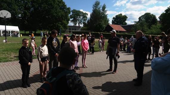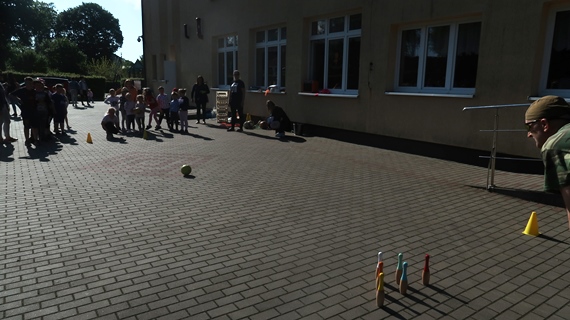 Później uczniowie klasy ósmej poprowadzili różne konkurencje dla swoich młodszych kolegów, a było to: malowanie twarzy, rzucanie lotkami do balonów, przechodzenie przez szarfy, bieg slalomem między pachołkami, zgadywanka kubeczkowa, jedzenie jabłka zanurzonego w wodzie bez pomocy rąk, szukanie monety przykrytej mąką, kręcenie hula hop, strzelanie z broni pneumatycznej (wychowawca klasy), zaś loterię fantową poprowadziły uczennice klasy VII. Po godzince nastąpiła przerwa i dalej już nasi nauczyciele i rodzice poprowadzili kolejne konkurencje. W między czasie uczniowie klasy czwartej otrzymali karty rowerowe z rąk policjanta.