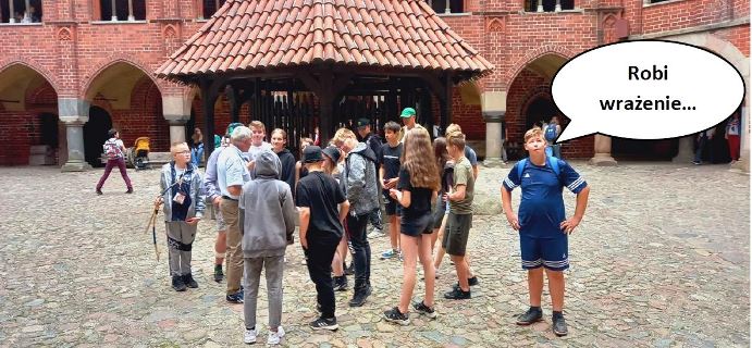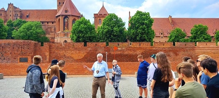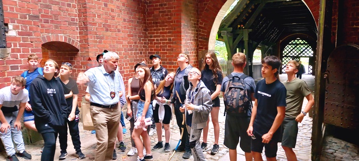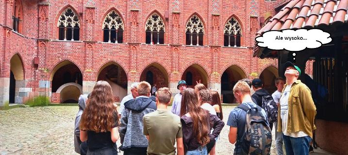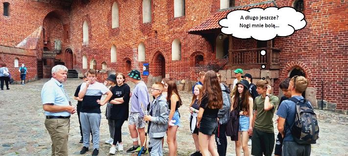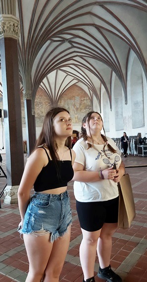 Na zakończenie wycieczki został najważniejszy punkt, czyli zwiedzanie największego na świecie zamku Zakonu Krzyżackiego. Uczniowie zostali podzieleni na dwie grupy, z których każda ze swoim przewodnikiem ruszyła w podróż do czasów, kiedy Zakon Krzyżacki był potęgą. Mogliśmy się dowiedzieć jakie warunki należało spełniać, aby zostać członkiem zakonu, jakie zasady wyznaczały tor życia zakonnika, jak wyglądały ich zwykłe, przyziemne czynności takie jak toaleta, czy kuchnia.