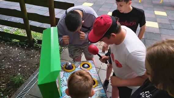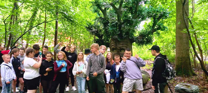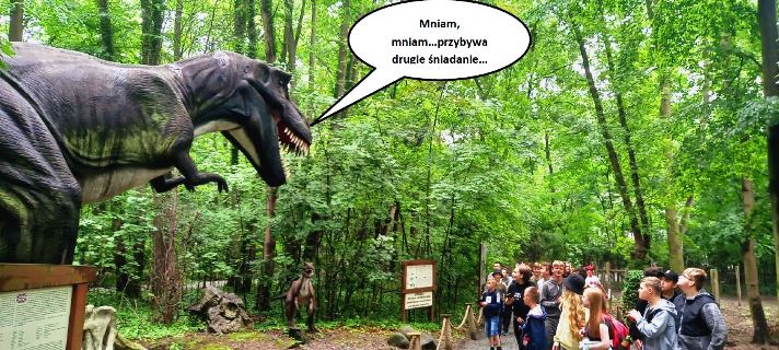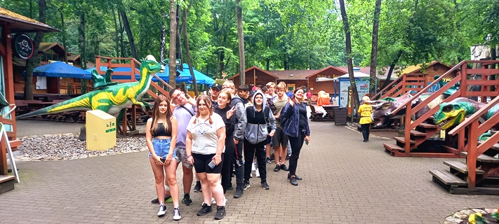 Pierwszym punktem wyjazdu był Dinopark, a w nim niezwykłe kino 5D. Jazda kolejką na ekranie takiego kina to nieodparte wrażenie realnych przeżyć. Następnie uczniowie mogli przejść ścieżką pełną poruszających się, wydających bardzo realistyczne odgłosy dinozaurów.