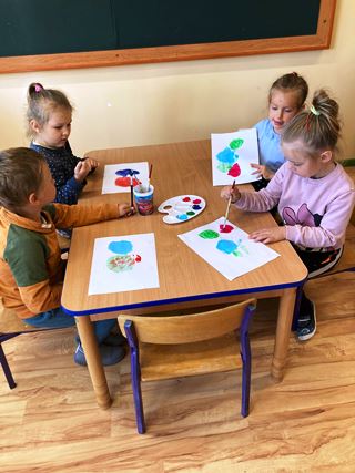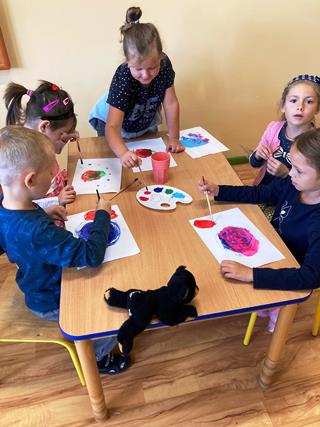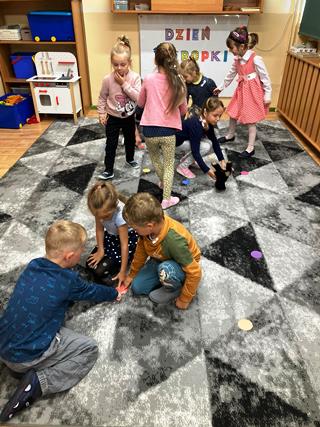 16 września w oddziale przedszkolnym obchodzony był Dzień kropki, czyli święto kreatywności, odwagi i zabawy. Przedszkolaki wysłuchały przeczytanej książki pt. "Kropka" Petera H. Reynoldsa. Opowiedziały o swoich talentach, których mają na prawdę bardzo dużo. Na chwilę zamieniły się w Vashti i zamalowały swoje kropki. Były zabawy ruchowe. Na koniec nauczyły misię Monikę nowych rzeczy. To był dzień pełen radości i kreatywności.