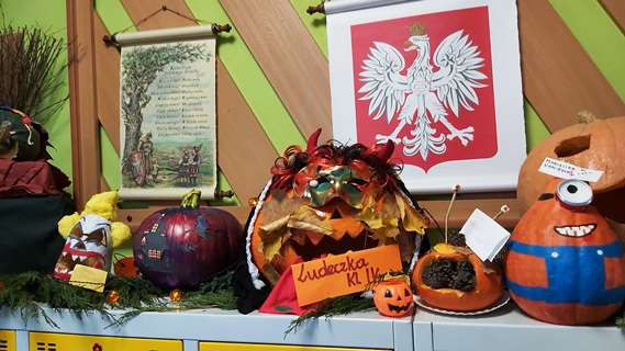 Dziękuję uczniom za zaangażowanie w wykonywanie prac z dyni, przedstawicielom SU za pomoc w przeprowadzeniu konkursu, jurorom za owocną współpracę przy ocenianiu prac uczniów, Pani Joannie za przygotowanie wystroju miejsca ustawienia dyń na szafkach szkolnych i gratuluję wszystkim otrzymanych wyróżnień, a szczególnie mojej wspaniałej klasie ósmej za otrzymanie wyróżnienia…