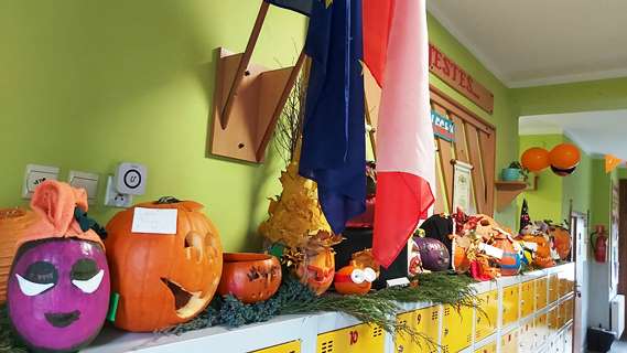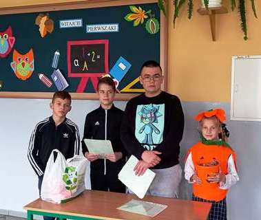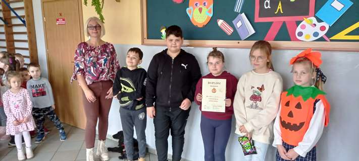 I oni, uczniowie z wyróżnionych klas otrzymali nagrody. Uczniowie z zerówki oraz klasy II otrzymali kwaskowate cukiereczki, uczniowie z klasy IV, VII i VIII otrzymali zawieszki na klucze z dynią.