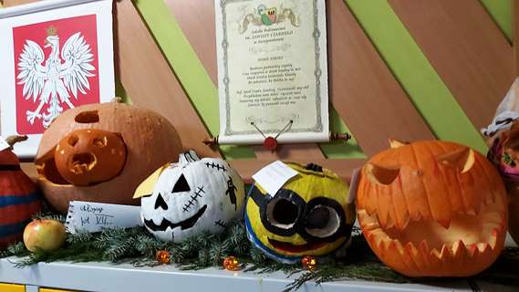 28 października 2022 roku odbyło się podsumowanie konkursu na „Super dynię” zorganizowanego przez Samorząd Uczniowski pod opieką Pana Dariusza Wolskiego. Od poniedziałku trwała praca uczniów w celu przygotowania jak najpiękniejszych dyń na szkolny konkurs. Można było pracować samemu nad swoją dynią lub też całą klasą. Pracy było co nie miara, a czas szybko leciał. Zaangażowanie uczniów było ogromne, co można zobaczyć na zdjęciach z konkursu. Jury w składzie Pani Dorota, Pani Joanna i Pan Bogusław miało niezłe zadanko. Które prace należy wyróżnić, komu przypisać nagrody ufundowane przez Radę Rodziców… W końcu nadszedł piątek i podczas apelu ogłoszono wyniki. Pan Bogusław podsumował zaangażowanie uczniów i ich piękne dynie, a także trudną pracę jurorów, zaś przedstawiciele SU zabrali się do ogłaszania wyników. Jednak wcześniej wszyscy uczestnicy konkursu otrzymali, od Julii Golian w stroju dyni, po opakowaniu żelków. Następnie przedstawiciele SU tzn. Emil Klimkiewicz, Szymon Kosek i Natan Grabowski zaczęli podawać do wiadomości uczniów, którzy zostali wyróżnieni za swoje dynie: