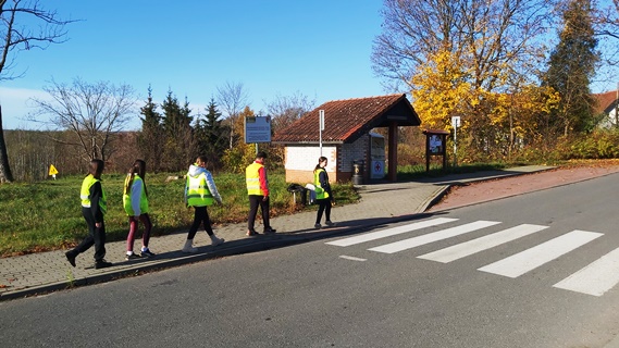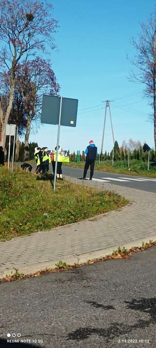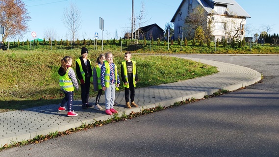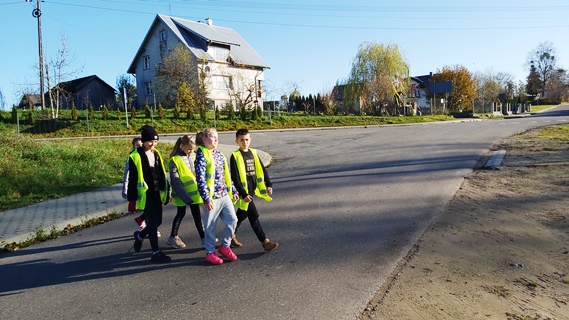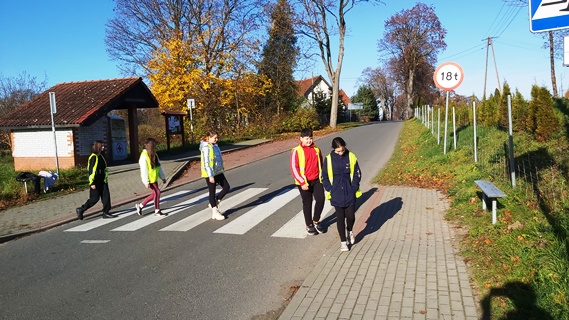 03 listopada 2022 r. podczas zajęć z techniki uczniowie klasy czwartej zapoznali się z zasadami bezpiecznego przechodzenia przez jezdnię po tzw. pasach-zebrze lub w miejscu, gdzie takiego oznaczenia nie ma. Następnie podczas zajęć wychowania fizycznego uczniowie klasy IV i V ubrani w kamizelki odblaskowe udali się na skrzyżowanie przy naszej szkole, aby w praktyce przećwiczyć umiejętność bezpiecznego przechodzenia przez jezdnię. Młodsi z klasy czwartej przechodzili przez jezdnię w nie oznakowanym miejscu, zaś starsi z klasy piątej po oznakowanym przejściu dla pieszych (znakami pionowymi i poziomym oznaczeniem). Wszyscy stanęli na wysokości zadania i wykonali je prawidłowo. Brawo Wy. Pamiętajcie o bezpiecznym przechodzeniu przez jezdnię tak jak nasi uczniowie.