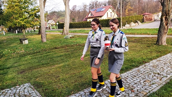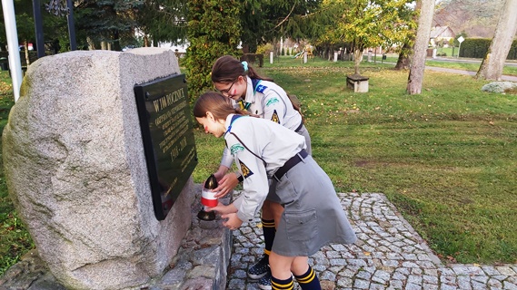 09 XI 2022, po uroczystym apelu w szkole, przedstawicielki naszej drużyny działającej przy Szkole Podstawowej im. Zawiszy Czarnego w Szczepankowie, a były to druhny: Hania i Julia wraz z drużynowym złożyły znicz przy tablicy niepodległościowej w Gierzwałdzie. Tablica ta upamiętnia odzyskanie niepodległości przez Polskę w 1918, po 123 latach zaborów (1795-1918).