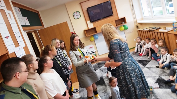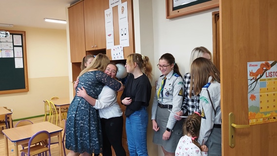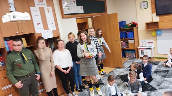 10 listopada przypadały urodziny wychowawczyni klasy ósmej. I właśnie tego dnia jej podopieczni zrobili swojej wychowawczyni miłą niespodziankę. Wspólnie odwiedzili ją podczas zajęć w naszym oddziale przedszkolnym śpiewając „Niechaj żyje 100 lat…”, składając życzenia, wręczając ulubiony kwiat oraz piękną filiżankę. Wzruszenia było co nie miara. Były przytulanki i całusy, a nawet ósmoklasiści otrzymali słodycze i podziękowania od uszczęśliwionej wychowawczyni.