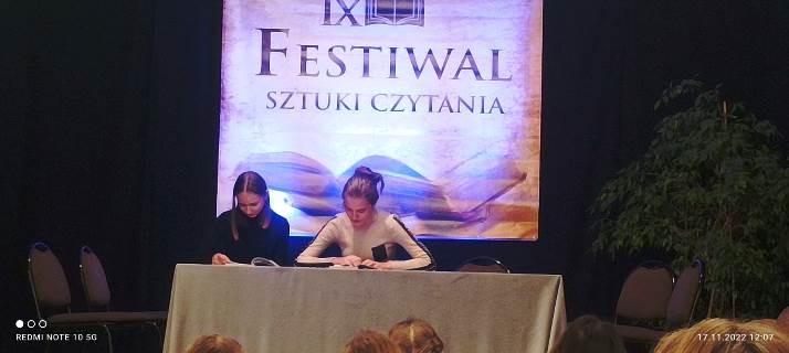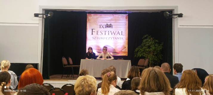 17 listopada po raz pierwszy uczennice naszej szkoły /klasy VIII/ wzięły udział w Festiwalu Sztuki Czytania, który odbył się w GOK-u w Dywitach. Dwie Julie, Hanna oraz Nikola miały przyjemność przedstawienia zgromadzonym fragmentów pięknej prozy. Julie zinterpretowały fragmenty "Ani z Zielonego Wzgórza", natomiast Hania z Nikolą przedstawiły fragmenty "Balladyny".