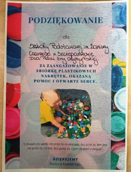 Od kilku lat nasza szkoła organizuje zbiórki nakrętek, by w ten sposób – chociażby jako kroplę w morzu – zebrać pieniądze na leczenie chorego dziecka.