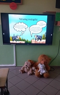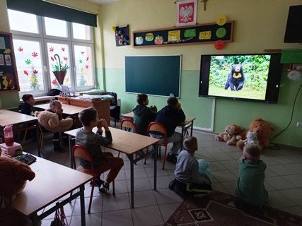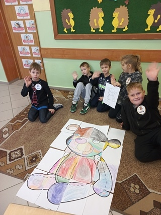 W tym wesołym dniu uczniów czekało wiele atrakcji. Poznały historię święta, oglądały film edukacyjny o życiu niedźwiedzi i poznały ich rodzaje. Zapoznały się z prezentacją przedstawiającą ilustracje i imiona różnych misiów. Brały udział w różnych zabawach ruchowych, konkursach, quizach, zgadywankach, a także wspólnie pokolorowały i ułożyły puzzle przedstawiające ogromnego misia. Czytały również opowiadania o misiach, a także redagowały opis wybranego misiowego bohatera.