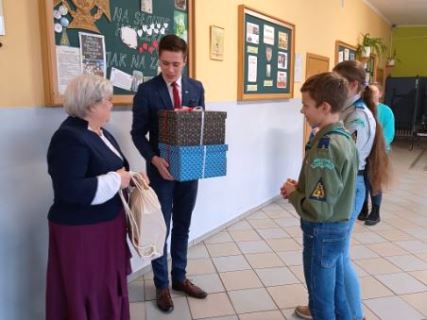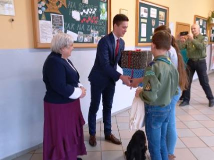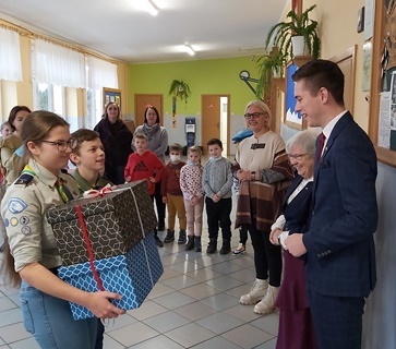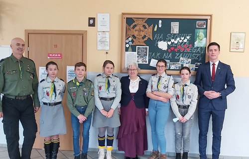 02 grudnia 2022 roku w naszej szkole gościliśmy Panią Bogusławę Orzechowską - Senatorkę Rzeczypospolitej Polskiej, lekarkę, polityka i samorządowca wraz z Panem Dawidem Olszewskim - działaczem młodzieżowym, członkiem Młodzieżowego Sejmiku Województwa Warmińsko-Mazurskiego. Spotkanie uczniów naszej szkoły z przybyłymi odbyło się z uwagi na uroczyste wręczenie plecaków i książeczek „Księga małego patrioty” dla przedstawicieli 3 Grunwaldzkiej Drużyny Harcerskiej „Ogniki” im. Karola Wojtyły, która działa w naszej szkole w Szczepankowie. Podarunki te były gestem uznania przez gości za naszą działalność harcerską, w której wychowanie patriotyczne odgrywa ważną rolę w przygotowaniu młodego pokolenia do dorosłości. My zaś na pamiątkę wspólnego spotkania wręczyliśmy naszym gościom plakietki drużyny.