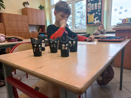 17 lutego obchodziliśmy Światowy Dzień Kota. Uczniowie klas I-III chętnie wzięli udział w zajęciach przygotowanych przez swoich wychowawców, panią: Elżbietę Wojutyńską, Anetę Kuczuk i Ewelinę Freigin. W ramach lekcji redagowali opowiadania oraz ogłoszenia o kotach. Wypełniali łamigłówki matematyczne, odkodowywali obrazek przedstawiający kota, czytali książki, w których głównym bohaterem był kot, a także uzupełnili swoją wiedzę ciekawostkami związanymi z życiem tego ssaka. Każda klasa wykonała także prace plastyczno- techniczne przedstawiające kota.