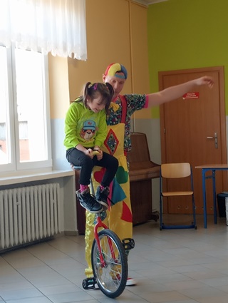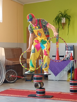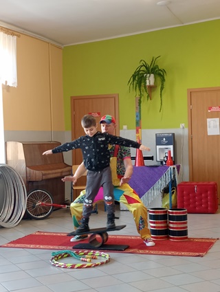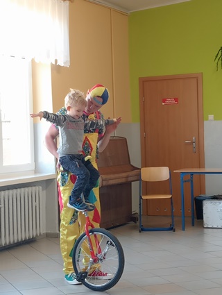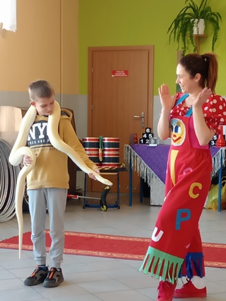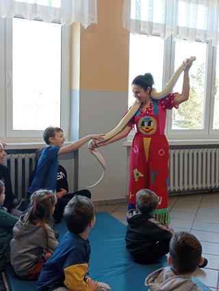 / zapewnili w dniu dzisiejszym naszym dzieciom i młodzieży artyści duetu cyrkowego "Szok" z Ukrainy, którzy w tak trudnym czasie w Ich Ojczyźnie bawią i cieszą swoimi wspaniałymi występami.