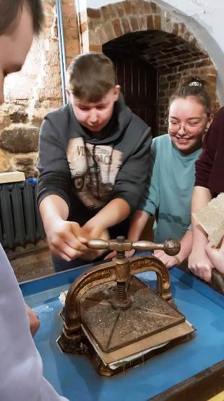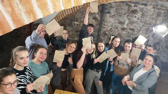 02 marca uczniowie klas I-VIII wybrali się na wycieczkę do Ostródy. Wszyscy wzięli udział w warsztatach czerpania papieru, które odbywały się na ostródzkim zamku. Każdy uczestnik zajęć mógł samodzielnie wykonać kartkę papieru, co było nowym i ciekawym doświadczeniem. Byliśmy również w muzeum, gdzie oglądaliśmy wystawę poświęconą historii miasta. Klasy I-III obejrzały też musical pt. „Czerwony Kapturek” przedstawiony przez Teatr Współczesny z Krakowa. W żywiołowy i wesoły sposób została ukazana znana wszystkim przygoda Czerwonego Kapturka. Ruchoma scenografia, barwne stroje aktorów oraz efekty świetlne świetnie dopełniały całość tworząc niezwykle bajeczny klimat przedstawienia. Natomiast klasy IV-VIII miały przyjemność obejrzeć spektakl „Katarynka”. Niezwykła gra aktorska wzbudziła w widzach wiele emocji.