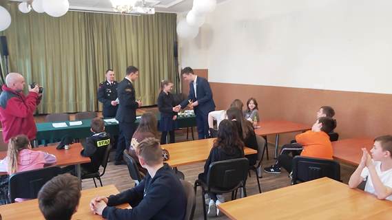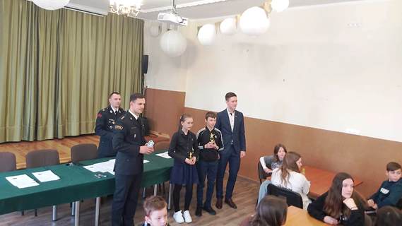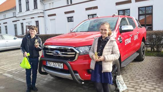23.03.2023 r. nasi uczniowie Alicja, Szymon i Gabriel wzięli udział w Eliminacjach Gminnych OTWP „Młodzież Zapobiega Pożarom”, które odbyły się w GOK w Gierzwałdzie. Przygotowaniami uczniów z naszej szkoły zajął się nauczyciel i jednocześnie drużynowy 3 GDH „Ogniki” im. K. Wojtyły, czyli Dariusz Wolski. Eliminacje rozpoczęły się ok. godz. 8:30 testem z wiedzy ogólnej (było 30 pytań) z podziałem na grupę starszą: klasy VII-VIII oraz młodszą: klasy I-VI (brawo Organizator👇). Po trudnym teście uczestnicy mogli udać się na „słodką” przerwę tzn. ciasto, herbata, napój, wafelek i czekoladowy zajączek dla każdego. W tym czasie trzyosobowe jury miało trudny orzech do zgryzienia - sprawdzić testy uczestników. Przed godziną dziesiątą ponownie wszyscy weszli do sali w oczekiwaniu na swoje zwycięstwo. I wtedy zostały ogłoszone wyniki. W grupie młodszej pierwsze miejsce zajęła Alicja, zaś drugie Szymon, oboje z drużyny harcerskiej działającej przy naszej szkole. W nagrodę otrzymali statuetki strażaka oraz możliwość reprezentowania naszej gminy na rejonowych eliminacjach w Ostródzie. Po powrocie do szkoły podczas apelu Pani dyrektor podziękowała naszym zwycięzcom - Alicji i Szymonowi - za wspaniały wynik i godne reprezentowanie naszej szkoły.
