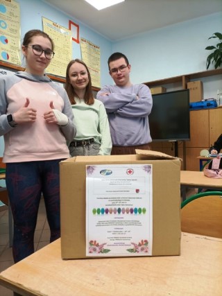 Członkowie SK PCK oraz wolontariusze z okazji Świąt Wielkanocnych zorganizowali paczkę dla seniora. Zebrane artykuły spożywcze oraz słodycze przekazano byłej pracownicy – emerytce naszej szkoły. Dziękujemy wszystkim, którzy przyczynili się do akcji.