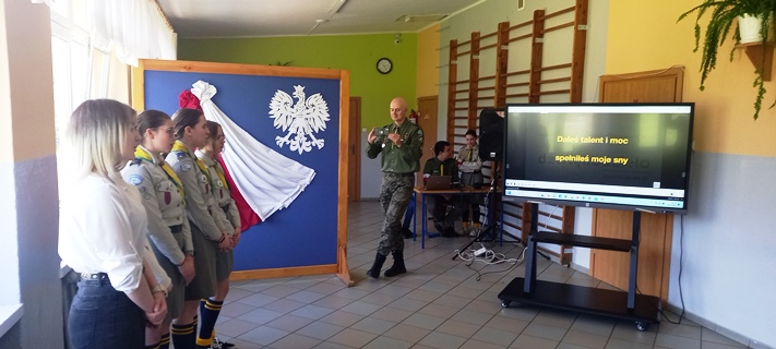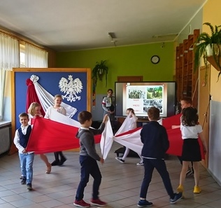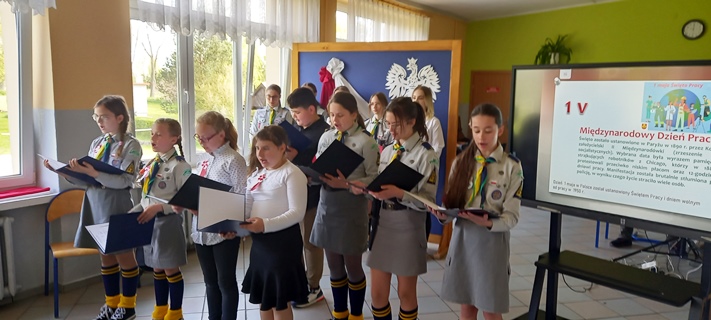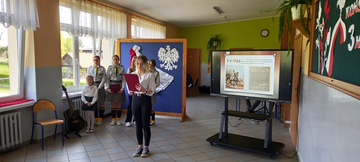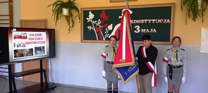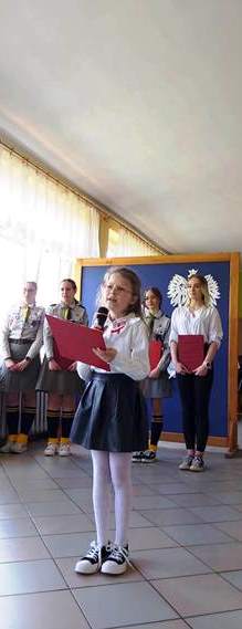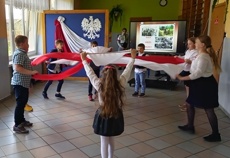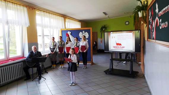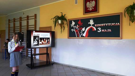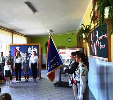 MAJ to szczególny miesiąc dla Polaków. W tym miesiącu kumuluje się szereg ważnych dla historii Polski rocznic historycznych. Właśnie pod hasłem ,,Majowe rocznice historyczne” odbył się uroczysty apel poświęcony istotnym rocznicom z przeszłości naszego kraju. Uroczystość obejmowała informacje na temat wybranych wydarzeń historycznych, piosenki dotyczące poruszanych zagadnień oraz taiec z flagami. W przedstawieniu brali udział uczniowie z klas II–VIII oraz harcerze. Każdy z elementów całości przygotowywali nauczyciele: Justyna Kozłowska, Ewelina Freigin, Danuta Jendrzejewska oraz Dariusz Wolski. Nad OPRAWĄ PLASTYCZNĄ czuwała Elżbieta Wojutyńska. Ogromne podziękowania dla nich ze strony organizatora imprezy, Dariusza Kalwińskiego.
