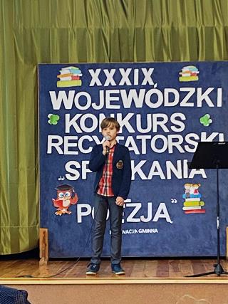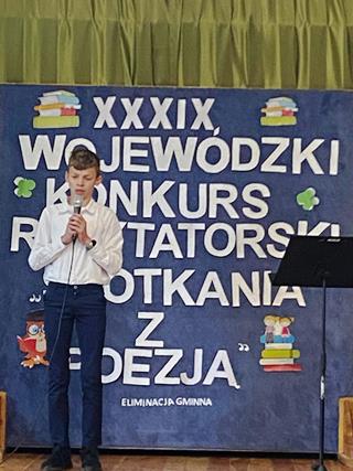 Szymon Kosek reprezentować będzie gminę w powiatowym konkursie recytatorskim w Ostródzie. Jesteśmy bardzo dumni.