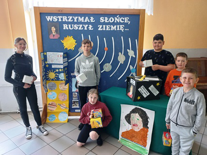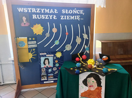 Uczniowie z oddziału przedszkolnego i klas I oraz III wykonali plakaty przedstawiające słynnego Polaka, a klasa II makietę Układu Słonecznego. Prace dzieci były przepiękne i zachwyciły wiele osób.
