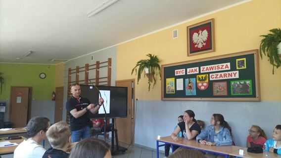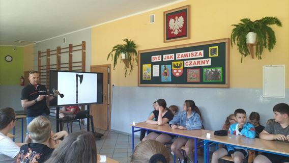 Dzień Dziecka 1 czerwca 2023 roku w naszej szkole połączony został z obchodami Dnia Patrona Szkoły – Zawiszy Czarnego z Garbowa. Podobnie jak w ubiegłym roku szkolnym rozpoczęlismy od konkursu historycznego na temat życia i działalności najsłynniejszego polskiego rycerza. Konkurs sprawdzał nie tylko wiedzę na temat życia i działalności Zawiszy Czarnego, ale wymgał od uczestników wykazania się umiejętnościami: uważnym słuchaniem, zapamiętywaniem, współpracą w grupie.