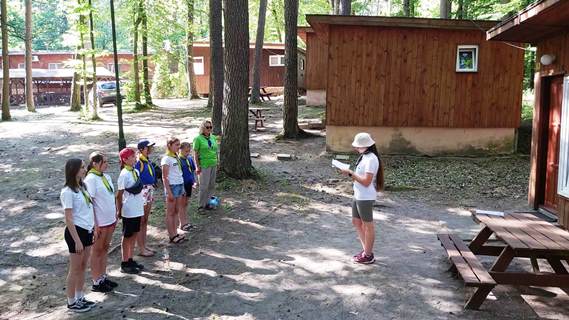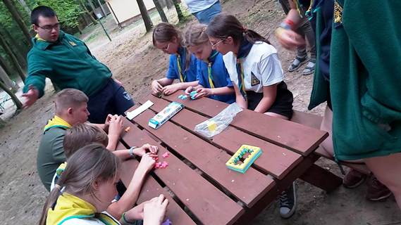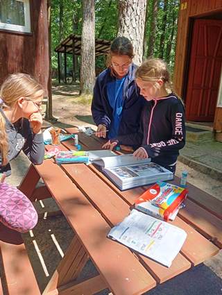Od dnia 11 do 14 czerwca 2023 r. trwał biwak naszych uczniów z drużyny harcerskiej OGNIKI w OW „Lech” w Lidzbarku. Nocleg mieliśmy zapewniony w domkach. Po przyjeździe udaliśmy się na grę po mieście odnajdując ciekawe walory kulturowe tegoż miasta. Po przyjściu do ośrodka, wieczorem, odbyło się świeczkowisko, podczas którego podsumowaliśmy grę, pośpiewaliśmy i na koniec podsumowaliśmy mijający dzień. Następnego dnia odbyło się rozpisywanie sprawności harcerskich, wymogów na naramiennik starszoharcerski, pieczenie podpłomyków, gotowanie makaronu, który zjedliśmy z owocami, spacer po Lidzbarku zakończony kebabem i lodami, a po powrocie warsztaty z pierwszej pomocy poprowadzone przez zastęp druhny Hani. Wieczorem spotkaliśmy się na śpiewankach z młodzieżą przebywającą w ośrodku, wypadło cudnie. W kolejnym dniu były zajęcia sportowo-rekreacyjne, gra z technikami harcerskimi, gra w BINGO dotycząca naszej drużyny. Później zamówiliśmy pizze – były przepyszne. Następnie było wyjście do miasta na spacer i dodatkowe zakupy na wieczorne pieczenie na ruszcie. Wieczorkiem, po kolacji, odbyły się śpiewanki, później zaś, dla wytrwałych, nocne wyjście na dawną przystań nad jeziorem ośrodka, w którym nocowaliśmy. Podczas biwaku udało się uzupełnić nasze zaległości w kronice drużyny. W ostatnim dniu zostało tylko uczestnikom zaliczenie zdobytych sprawności harcerskich podczas tego biwaku. Wszyscy otrzymali pamiątkowe lilijki na rzemyku, a później odbyło się podsumowanie biwaku. Cała młoda kadra biwaku wywiązała się ze swoich obowiązków. Brawo WY! Na końcu czekało nas pakowanie, sprzątanie, zdanie domków i rozliczenie z właścicielką ośrodka, a następnie trzema samochodami udaliśmy się w drogę powrotną, zmęczeni, niewyspani jednak zadowoleni ze wspaniałej przygody, którą przeżyliśmy w gronie naszej drużyny. Niech żałują te osoby, których zabrakło na naszym biwaku. Było SUPER jak wynikało z wypowiedzi podczas podsumowania biwaku…