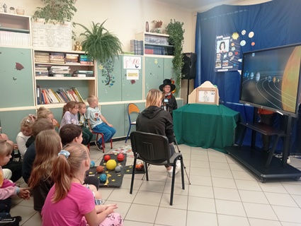W ramach realizowanego przez ARS et LIBER Stowarzyszenia Twórców Kultury i Przyjaciół Biblioteki w Ostródzie zadania pod nazwą "Mikołaj Kopernik - rewolucja na niebie i Ziemi", współfinansowanego przez Samorząd Województwa Warmińsko-Mazurskiego zgodnie z umową nr KE. 52.2023/EK klasa V w dniu 03.10.2023 r. przygotowała Drewniany Teatrzyk Ilustracji "Kamishibai", którego odbiorcami byli uczniowie z klas I-III.