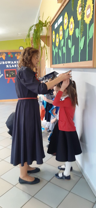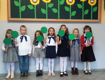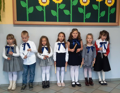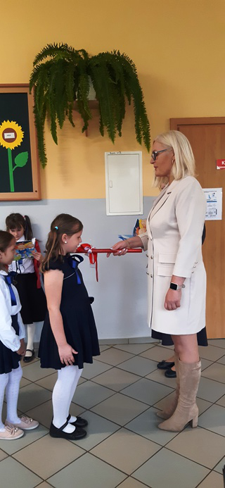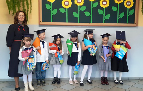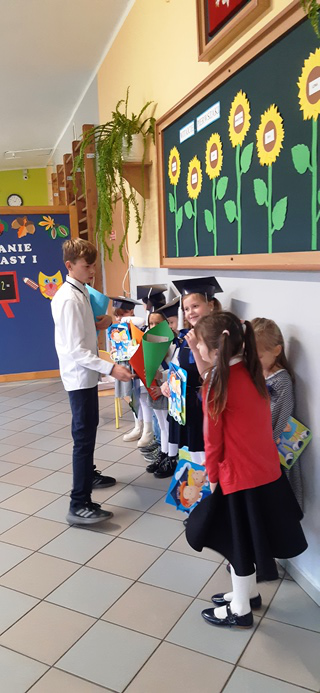 Po ślubowaniu na sztandar szkoły i pasowaniu przez panią Dyrektor, najmłodsi uczniowie naszej szkoły otrzymali pamiątkowe dyplomy oraz rożki-niespodzianki.