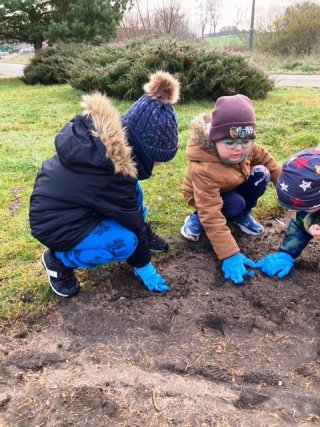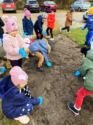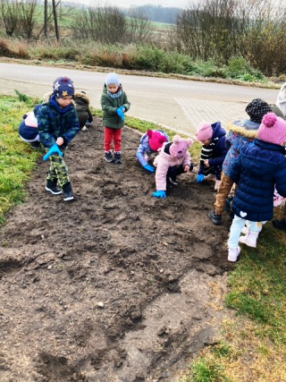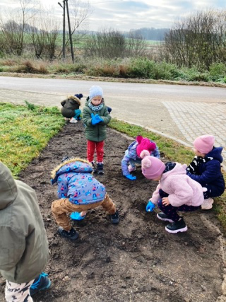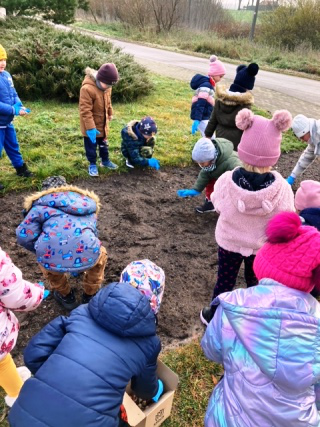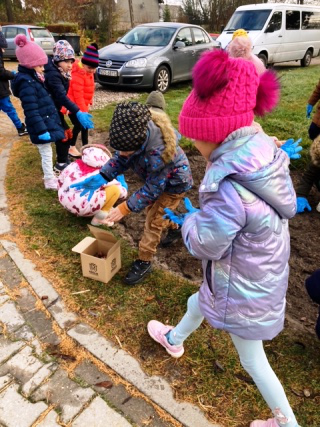 Jakiś czas temu pani Monice udało się zdobyć 150 cebulek kwiatowych w ramach akcji „Kwiatowe przygody przedszkolaka”. Wczoraj nasze przedszkolaki wyposażone w rękawiczki i cebulki od firmy Hurtownia Ogrodnicza Bogdan Królik zasadziły je przed naszą szkołą. Celem akcji jest promowanie roślin cebulkowych wśród najmłodszych, możliwość zapoznania się przez dzieci z zasadami uprawy kwiatów.