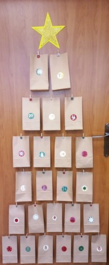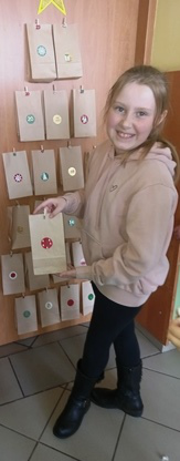 Klasa III ozdobiła swoją salę kalendarzem adwentowym, w którym dzieciaki znajdą nie tylko słodkości, ale również świąteczne upominki i ciekawe zadania. Uczniowie codziennie będą otwierali jedną torebkę, w której znajdą wyzwanie matematyczne, zręcznościowe lub takie, które umocni relacje rodzinne. Już dziś dzieciaki otrzymały dwa zadnia (rozwiązać zadanie matematyczne i ulepić bałwana) oraz małe "co nieco".