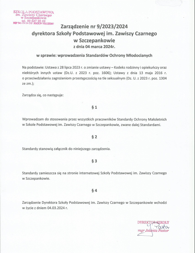 Proszę zapoznać się ze standardami ochrony małoletnich przed krzywdzeniem, które zawarte są w załączniku.