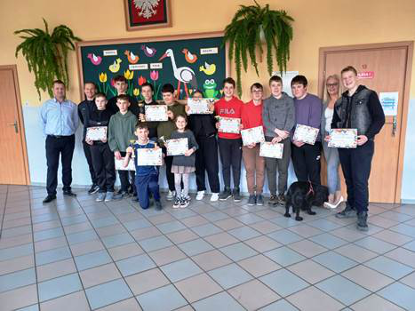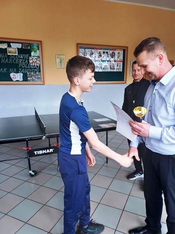 Rozgrywki przeprowadzone były w dwóch kategoriach: dziewczęta i chłopcy klasy 4-8. Do mistrzostw przystąpiło 17 osób, które rywalizowały systemem „każdy z każdym”. Po wielu wyrównanych i pełnych emocji meczach, wyłonione zostały trzy najlepsze osoby w każdej kategorii. Podczas apelu uczestnikom wręczono pamiątkowe puchary i dyplomy. Nagrody ufundował radny Gminy Grunwald Pan Adam Królikowski.