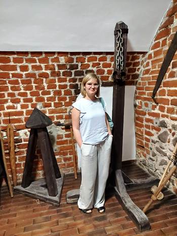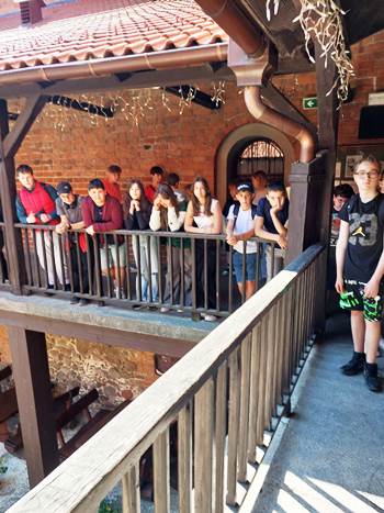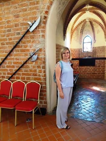 Wyjazd rozpoczęliśmy wizytą w Zamku Krzyżackim w Nidzicy, gdzie zwiedziliśmy wspaniałe wystawy dotyczące funkcjonowania Zakonu Krzyżackiego. Obejrzeliśmy także eksponaty związane z życiem rycerstwa oraz wsi mazurskiej w dawnych wiekach. Pan przewodnik z wyjątkową pasją i zaangażowaniem wtajemniczał nas w arkana ówczesnego życia, walki i pracy na roli.