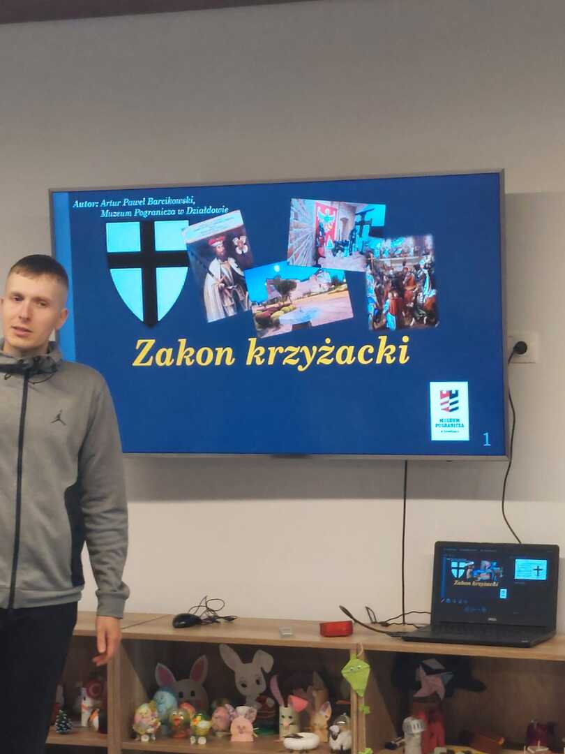 Następnie udaliśmy się do Działdowa, aby zwiedzić tamtejszy zamek. Najpierw wzięliśmy udział w lekcji muzealnej poświęconej historii Zakonu Krzyżackiego. Kolejnym punktem programu było zwiedzanie przepięknych wystaw muzealnych dotyczących Krzyżaków. Po zwiedzeniu zamku udaliśmy się z przewodnikiem do Muzeum Pogranicza w Działdowie zwanego Interaktywnym Muzeum Państwa Krzyżackiego, aby zapoznać się z fotografiami dotyczącymi wyglądu dawnego Działdowa. Niebywałą atrakcją były przekazane w nowoczesny sposób materiały multimedialne dotyczące Zakonu Krzyżackiego. Obejrzeliśmy także multimedialną inscenizację bitwy pod Grunwaldem. Ostatnim elementem tejże wycieczki była zabawa rycerska, podczas której mogliśmy zasmakować średniowiecznego życia wcielając się w rycerzy i średniowieczne damy.