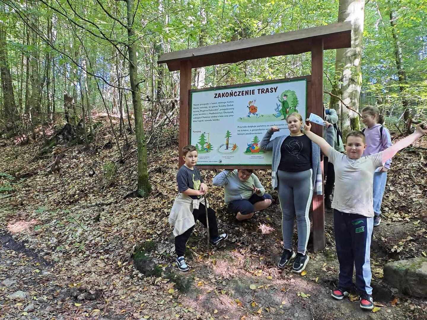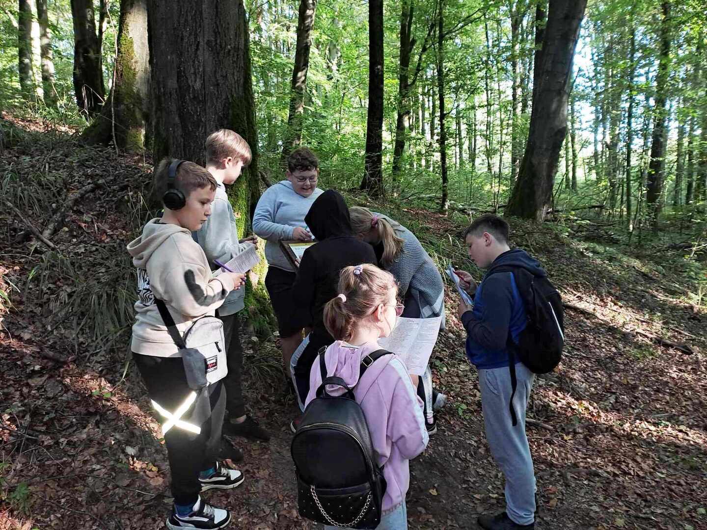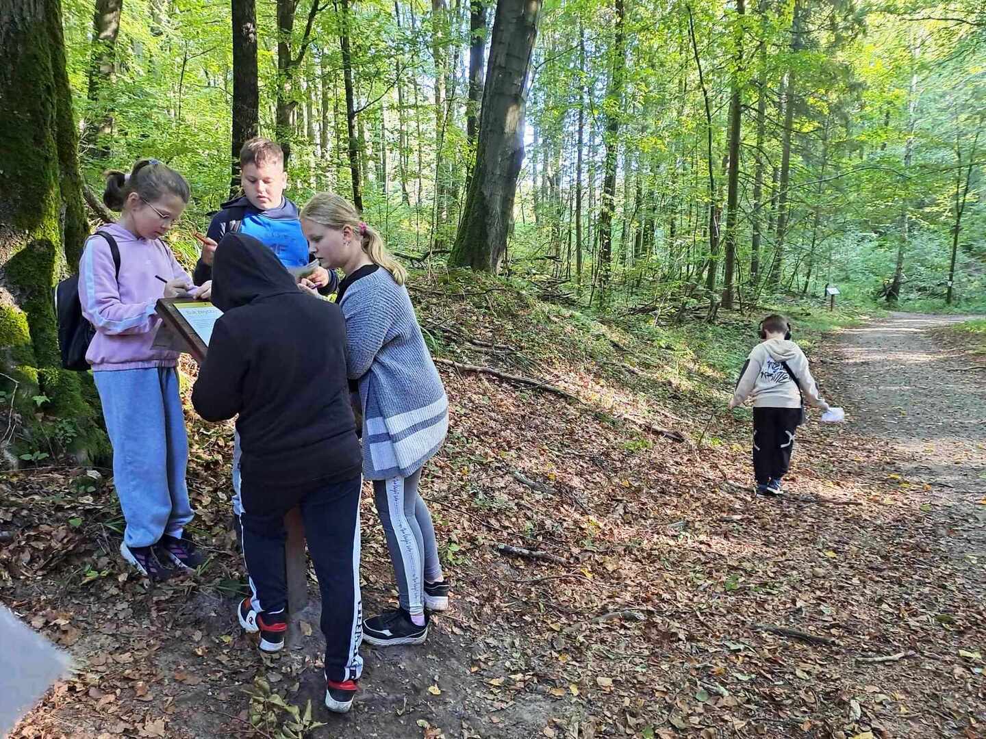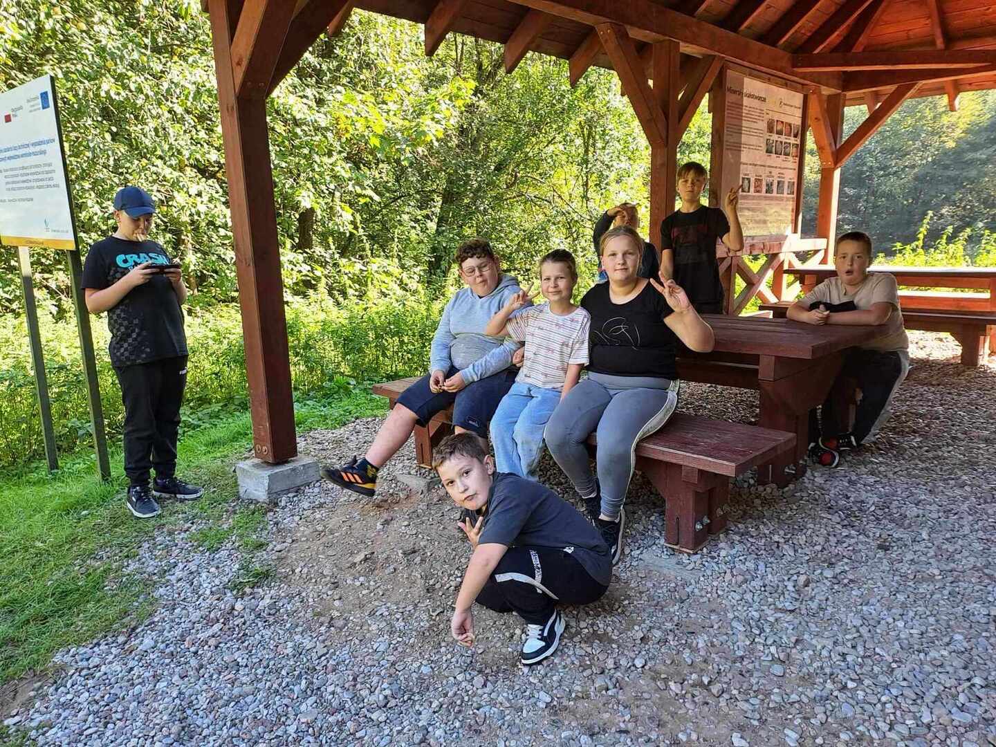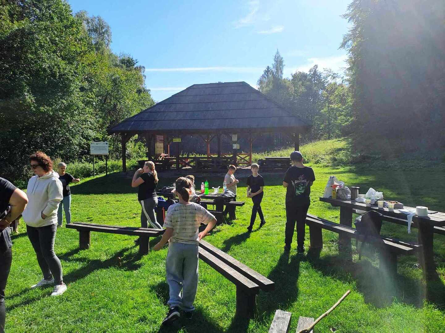 Uczniowie wraz z mamami, którym pozwolił czas na spotkanie, wzięli udział w grze terenowej na ścieżce dydaktyczno-przyrodniczej N-ctwa Olsztynek położonej w miejscowości Wysoka Wieś. Gra była o tyle ciekawa, że kierunek wędrówki uczniowie poznawali rozwiązując zagadki, rebusy i zadania umieszczone w opisie. Dzięki temu mogli odkryć unikalną kulturę, dziedzictwo oraz historię Parku Krajobrazowego Wzgórz Dylewskich. Klasa dzielnie współpracowała, a przy tym było mnóstwo śmiechu… chociaż i zmęczenie już dało znać o sobie. Odpoczynek zapewniła nam biesiada przy ognisku.