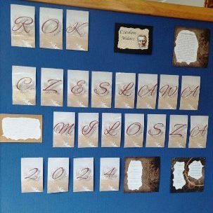 2 października 2024 r. uczniowie kl. V-VII z okazji obchodów Roku Czesława Miłosza przedstawili program literacki, podczas którego zapoznali widzów ze szczegółową biografią poety - Noblisty oraz recytowali jego wiersze. Wyjątkowym urozmaiceniem programu było wysłuchanie poezji śpiewanej Miłosza w wykonaniu Stanisława Sojki i Adama Dennisona. Przypomnijmy, że w tym roku obchodzimy 20. rocznicę śmierci poety oraz 23. rocznicę przyznania artyście nagrody Nobla za całokształt twórczości poetyckiej.