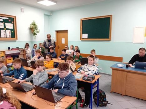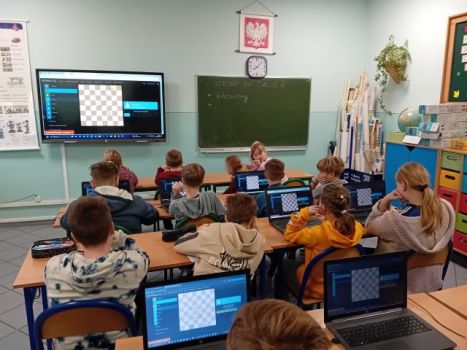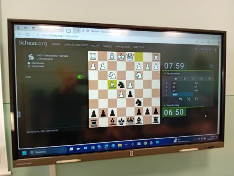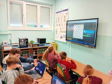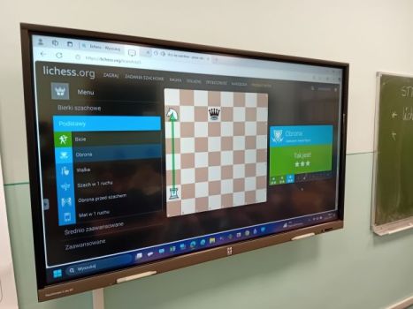 Pan Kamil wskazał uczniom, jak można wykorzystać tę stronę do nauki i doskonalenia umiejętności gry w szachy. Uczniowie poznali podstawowe zasady gry, możliwości ćwiczenia poszczególnych wariantów taktycznych. Strona umożliwia także granie z przeciwnikami na różnym poziomie. Zaproponowana nowa forma zgłębiania tajników gry w szachy przypadła bardzo do gustu naszym uczniom.